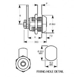 The Lowe and Fletcher 4801 radial pin tumbler cam lock has a 22.2mm body length and conical head.